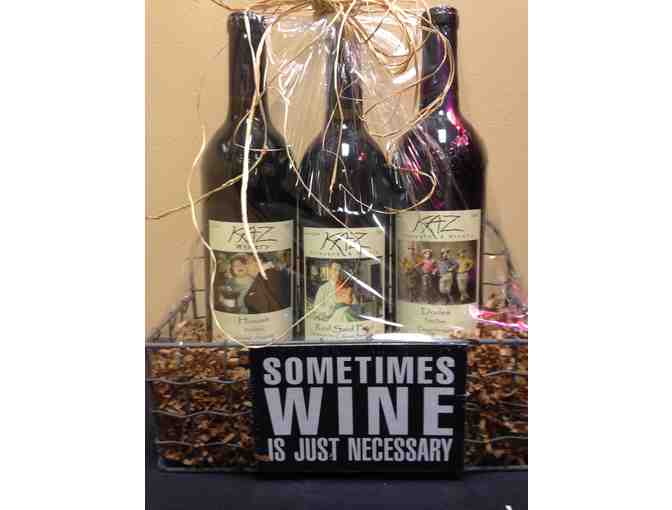 Enjoy three delicious bottles of KAZ wine in the following blends: Huzzah: Red Win;, Red Said Fred: Zinfandel, Cabernet, Merlot, and Petit Sirah Blend; Dudes: Petit Sirah