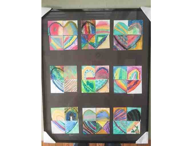 Students created this beautiful piece of artwork by combining different heart designs. Be sure to check out the item at pick up or drop off. It's displayed by Ms. Godsoe's classroom.