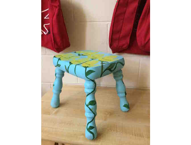 This step-stool from the yellow gator class features handprints of all the yellow gators! Measures approximately 11"l x 9"w x 11"h.