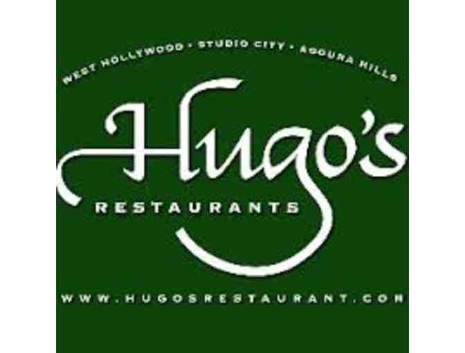 Enjoy dinner for 2 at Hugo's Restaurant's Agoura Hills location only. Dinner is defined as 1 entree, 1 starter, 1 dessert, and 1 non-alcoholic beverage, Mon-Fri.