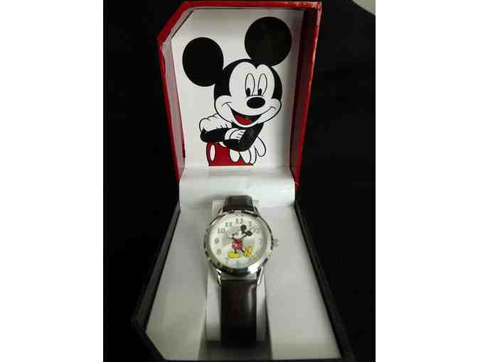 Unisex Mickey Mouse watch with smooth brown strap.