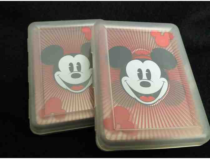 This playing card deck features Mickey Mouse images on the card faces and backs and is suitable for all card games. There are 2 full sets.