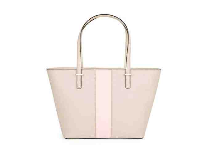 Winner will receive a Kate Spade Cedar Street Racing Stripe Medium Harmony bag in Crisp Linen. Dimensions: 11.1"h x 12.9"w x 6.4"d -- drop length: 9''