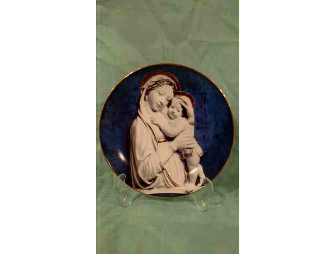 Up for auction is this “Madonna and Child” by Luca della Robbia Plate #3730. 1985 edition of the annual Christmas stamp art plate from the International Museum, 8-1/2” across.