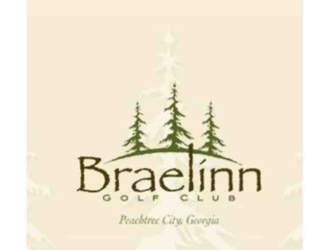 An 18-hole round of golf for four with carts at Braelinn Golf Club in Peachtree City, GA. Appropriate golf attire is required. Please call for availability and to schedule tee time. Certificate expires one year from purchase date. URL: http://canongategolf.com/
