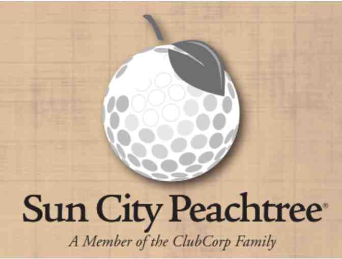 An 18-hole round of golf for four with carts at Sun City Peachtree Golf Club in Griffin, GA. Appropriate golf attire is required. Certificate expires one year from purchase date. URL: www.suncitypeachtreegolf.com