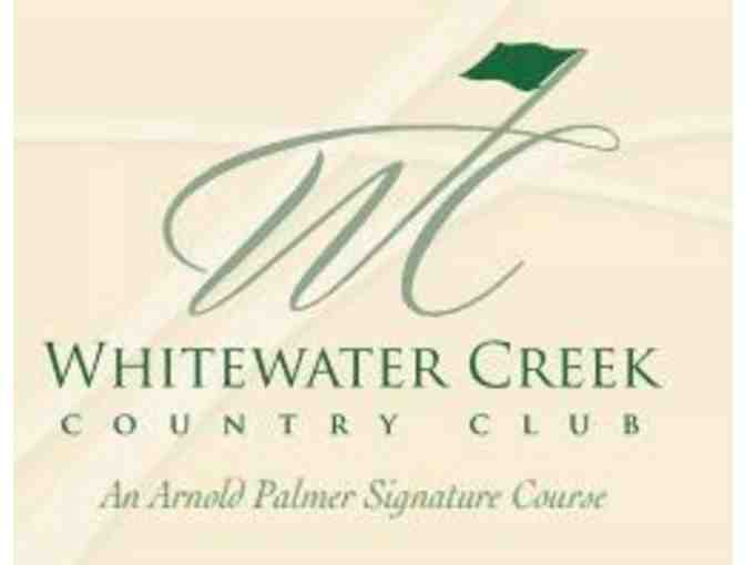 An 18-hole round of golf for four with carts at Whitewater Creek Country Club in Fayetteville, GA. Appropriate golf attire is required. Certificate expires one year from purchase date. URL: www.whitewatercreekcc.com