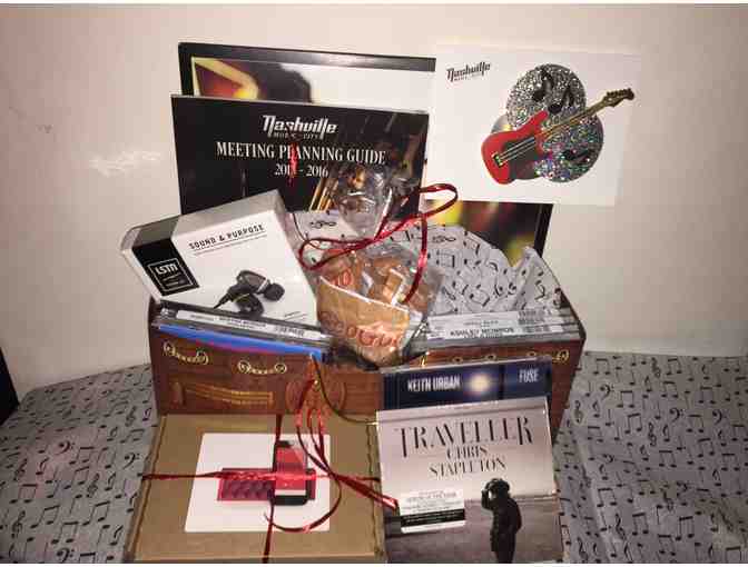 Hear the sounds of Nashville with our deluxe basket full of Nashvillian musician's CDs, a mini Jambox by Jawbone, a pair of LSTN ear buds, and an autographed album by the Grammy award winning band the Kings of Leon!