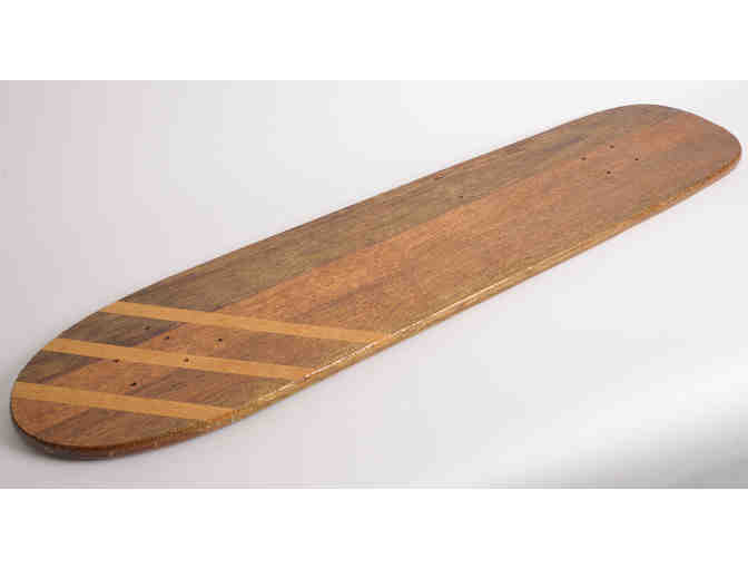 Handmade wooden skateboard from Waring seventh grader, Cole Sauder. This skateboard is made completely of recycled wood.
