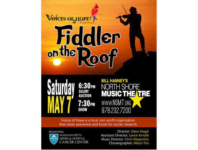 Four tickets to a full musical production of Fiddler on the Roof presented by Voices of Hope at North Shore Music Theatre. Proceeds from the show go to the Massachusetts General Hospital Cancer Center. Enjoy a meal at Beverly's Hale St. Tavern before or after the show.