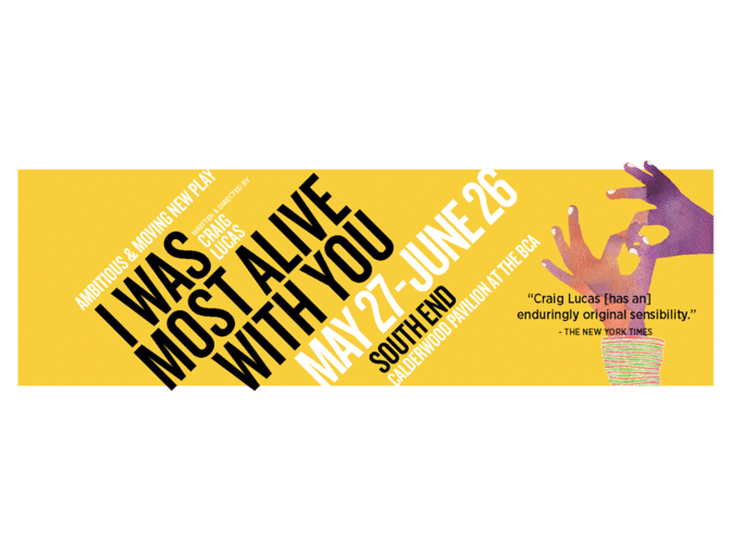 Four tickets to Huntington Theatre Company's ambitious and moving new play "I Was Most Alive with You" running May 27th though June 26thwritten and directed by Craig Lucas and on stage at the Calderwood Pavilion (527 Tremont Street, Boston).Start the night off right with dinner at nearby Metropolis Cafe, which offers a relaxed, romantic neighborhood environment and presents creative, Mediterranean-inspired eclectic menus.
