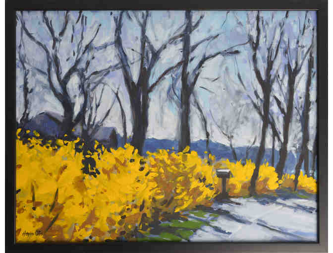 Beautiful painting of spring forsythia by Waring parent and alumna Nicole Hupin - Otis.