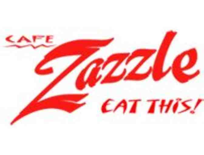 $30 gift certificate to enjoy Cafe Zazzle. The menu is a range of influences - Asian (Chinese, Korean, Japanese, Thai), Italian and the American southwest. But no dish is a strict interpretation from any one culture, rather a fusion of flavors from these influences; much like the cultural influences that have shaped California.
