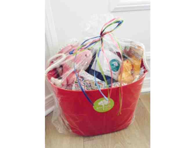 Bakolore Basket filled with Find & Keep Book, Jellycate Toothie Pig, Chicken Popper, Coin Bank, Mini Farm and Gum Tree Trucker Hat