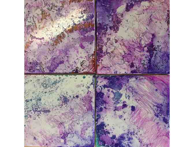 The winner will receive 4 alcohol-ink tile coasters. Each coaster will have a backing.