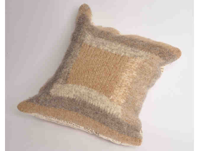 Hand knit pillow in beige and tan. Made with felted wool with French accents. Perfect for your living room!