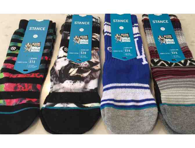 4 pairs of boys Stance socks. Multiple colors. These socks will fit little guys--kindergarten age and below. Kids size 7-10, Youth S.