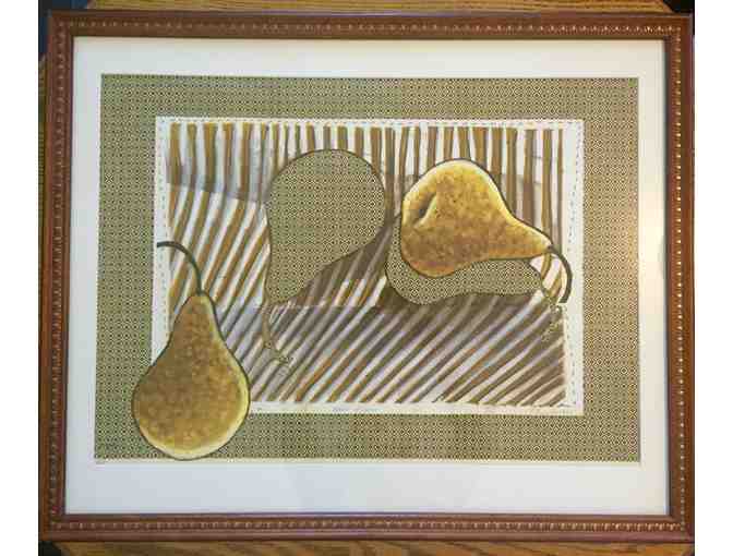 Mixed media monoprint of Bosch Pears by local artist Mary Rhinelander, aunt of senior Adele MacEwen. Mary works as an artist out of Gloucester MA and works in a variety of mediums including mixed media, prints & collages and etchings.
