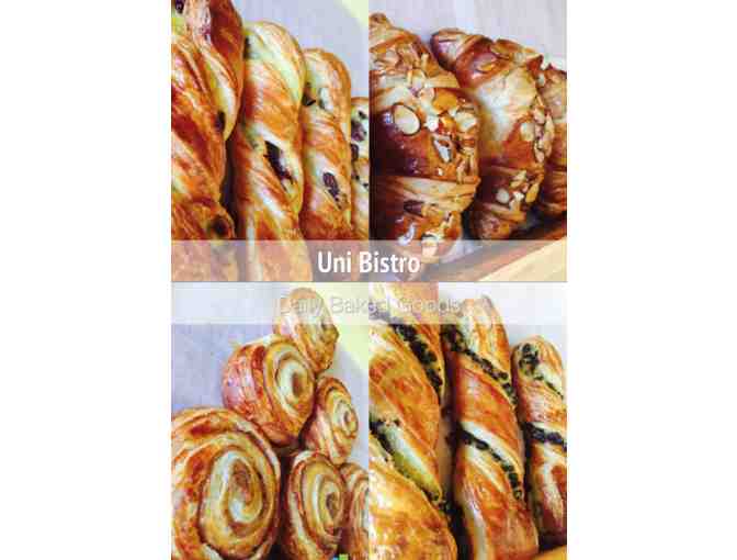 Choose from the following freshly baked croissants and danish - butter croissant, almond croissant, chocolate croissant, cranberry twist, chocolate twist, cinnamon swirl, apple turnover, maple pecan