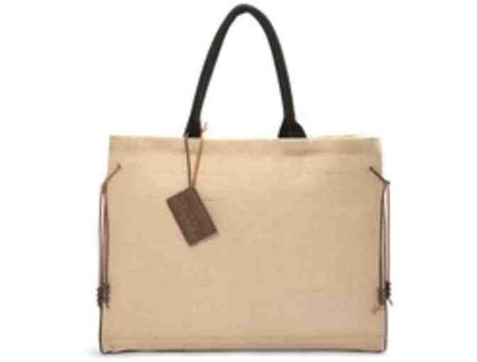 Perfect for the beach is this CHICO'S summer tote! Inside you will find a brown tech tassel , a jeweled hair tie, one clear make-up bag, and two leopard print travel bags!  Just add your stuff and you are set for a day trip or weekend getaway!
