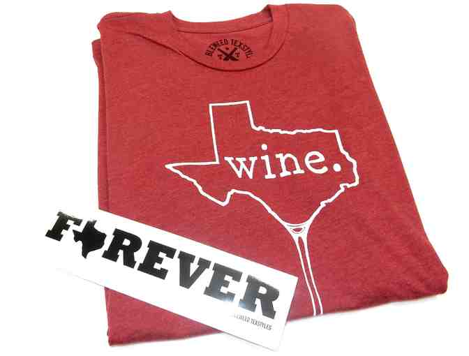 Sport a super cute T-shirt with "Texas in a Wine Glass" design. A FOREVER TEXAS logo design decal is included in the package.