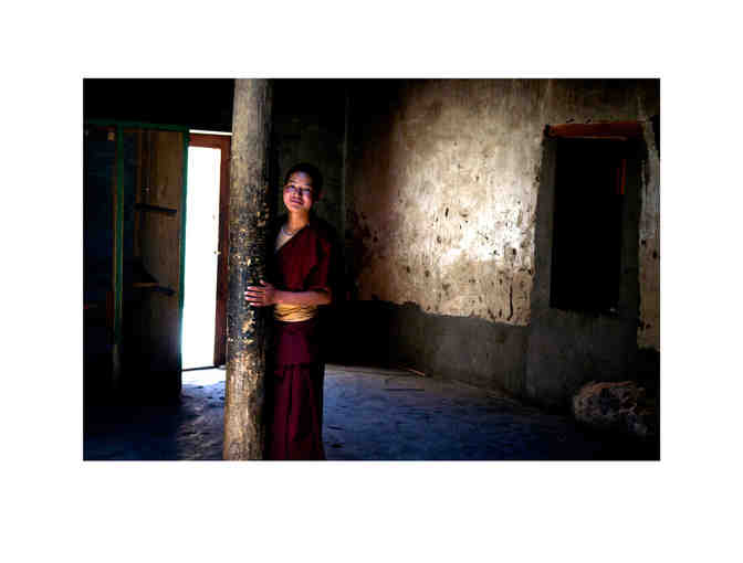 Description: "I drank a lot of butter tea, which unfortunately for me tastes awful. This young monk and his even younger friend were boiling butter tea and kindly shared it with Bill and me. The younger monk, not in the photo, was excited about our cameras so Bill handed his camera over to him and let him play around with it. The monk in the photo became the subject of his friend's pictures and subsequently mine as well. The two of them were a lot of fun together."