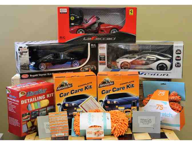 This basket is definitely for the car lover! It is filled with an assortment of items for your cars - big and small!