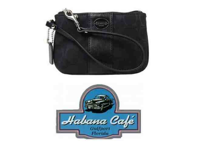 Includes a black signature Coach wristlet, as well as a $25 gift card to Habana Cafe!