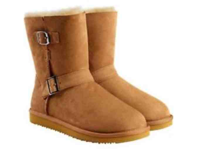 If you wear a size 6, you will have the warmest tootsies around! These shearling buckle boots in a beautiful chestnut color are the perfect winter boot.