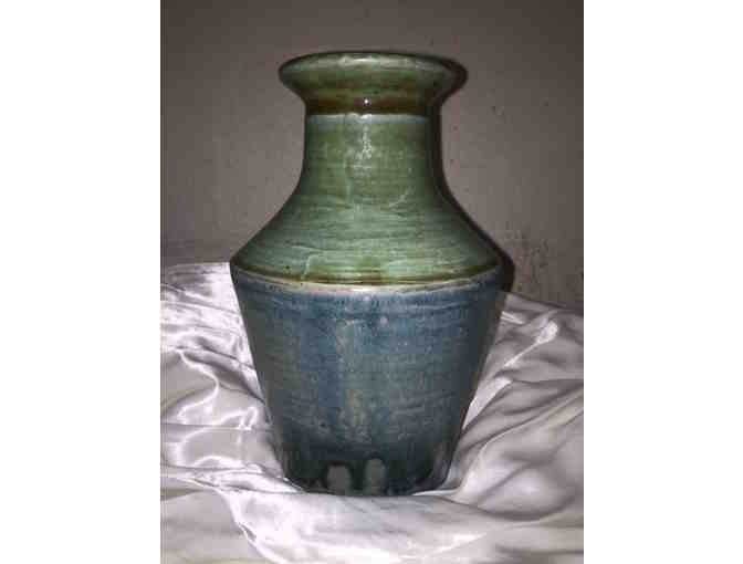 In calming shades of blue and green, this hand thrown stoneware vase adds a rustic, classic touch to your decor.