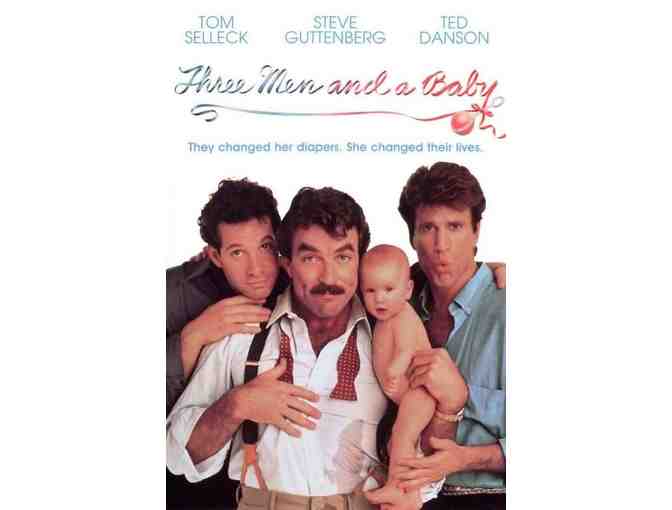 Take three of Hollywood's hottest starts (Tom Selleck, Steve Guttenberg, Ted Danson), add one adorable baby girl, and the result is a blockbuster comedy hit! This photo from the film 3 Men and a Baby is signed by the film star, Steve Guttenberg!
