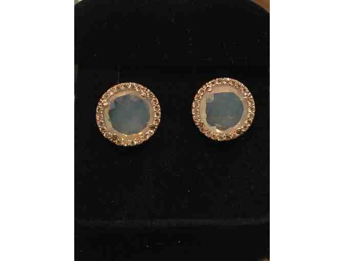 Borrowed Bling Moonstone round diamond earrings set in sterling surrounded by man-made diamonds!