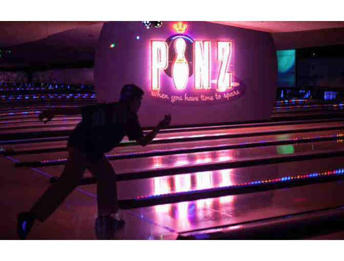 Reservations required and winner must request date at least 3 weeks in advance. Not valid on holidays and dates/times subject to Pinz bowling league schedule and/or other parties or conflicts. Includes lane rental for 30 bowlers and shoes. Catering by Jerry's Deli.