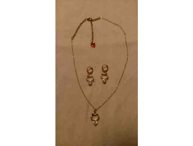 Up for auction is this set of cat earrings and necklace. 17" chain with orange round stone measuring 3/8".
