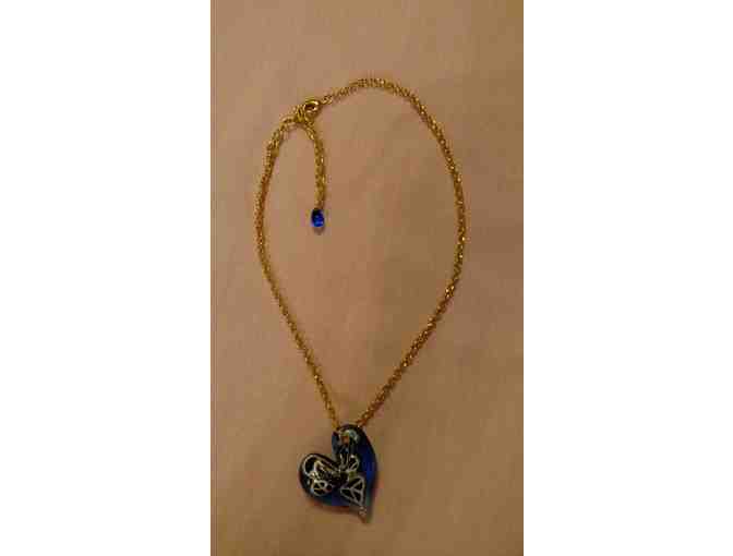 Up for auction is this blue heart necklace on a 17” gold chain. The blue heart measures 1-1/2" x 1-1/4".