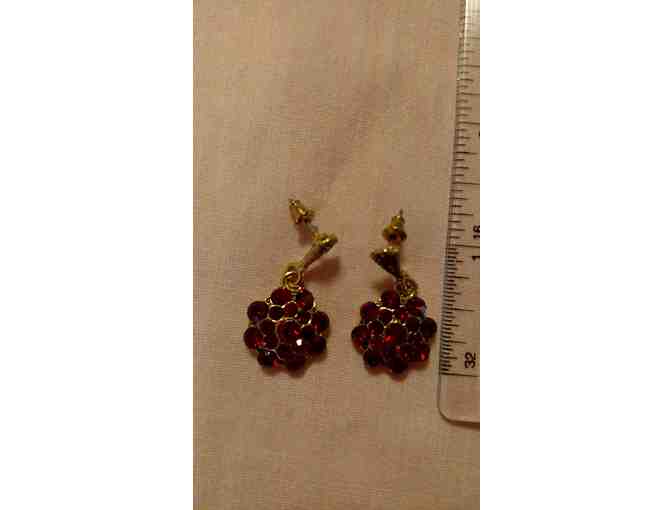 Up for auction is this pair of red flower-shaped earrings. Measures 3/8" round.
