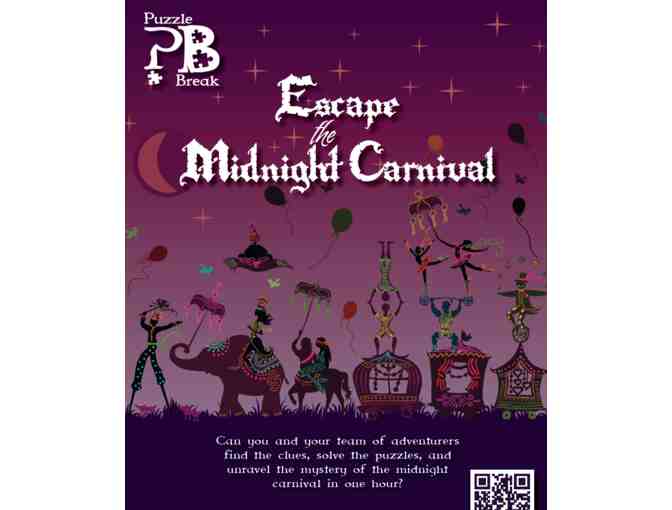 Can you and your team of adventurers find the clues, solve the puzzles, and unravel the mystery of the midnight carnival in one hour?