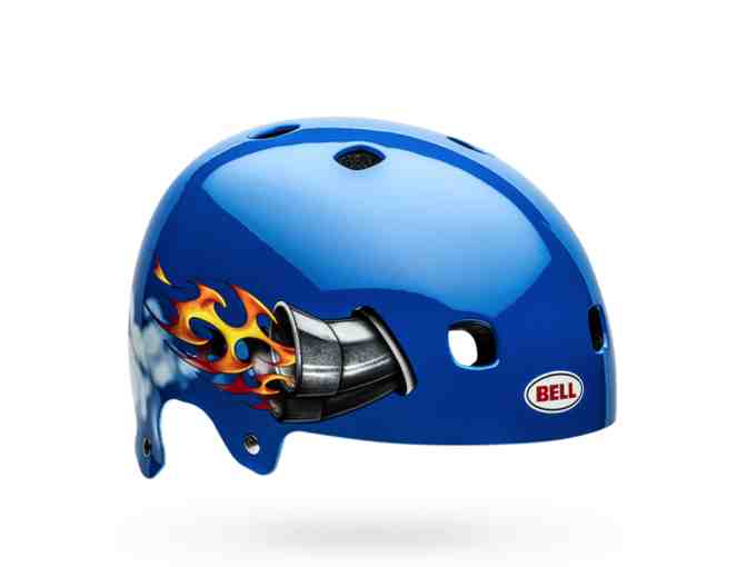 Blending the style of a classic skate helmet with head-hugging comfort and advanced fit technologies, the new Segment Jr. gives action sport groms everything they need. The secret to its comfort is Bell FormFit, which makes the helmet fit more like a comfortable cap than a hard-shell helmet. The eight internal segments are connected by a reinforcing skeleton. Segment Jr. meets both skate and BMX safety standards, making it the perfect everyday helmet for active mini-shredders. Color: Blue Nitro