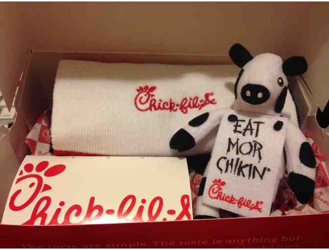 Enjoy this Chick-Fil-A basket filled with a scarf, stuffed animal and $85 worth of gift certificates.