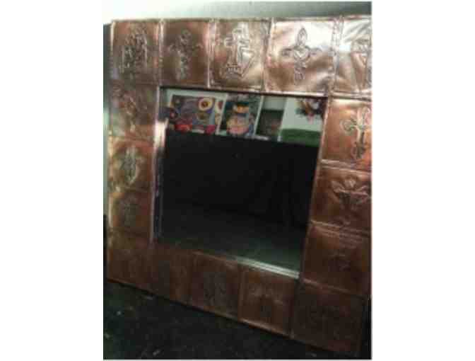 Enjoy these beautiful aged mirrors, framed with copper embossed crosses individually created by the 1st grade students.