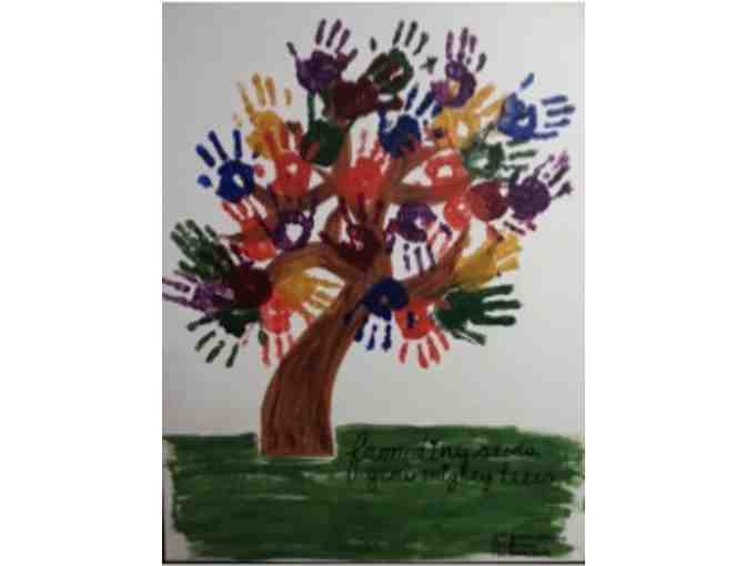 From tiny seeds, grow mighty trees...Our awsome 2nd graders have "hand painted" two beautiful 30x40 canvases in eye-catching colors. What a unique way to display your child's hand in the form of leaves. They grow up way too fast.