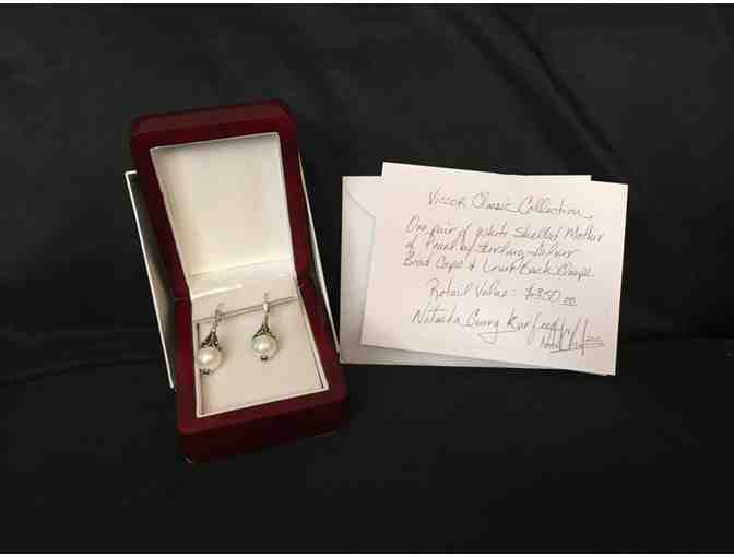 You really win when you place the winning bid on these beautiful custom made white shelled mother of pearl earrings with sterling silver bead caps and lever back clasps.