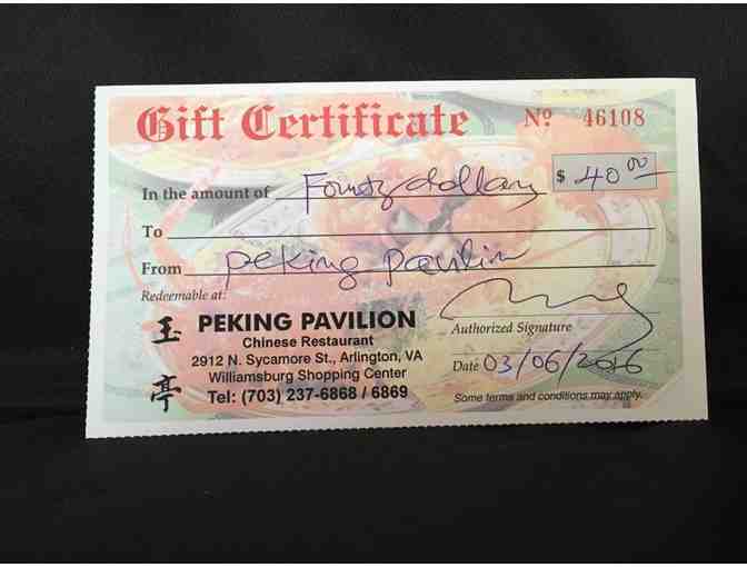 $40 Gift Certifacte to Peking Pavillion