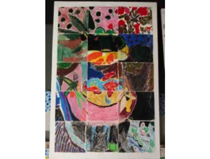 Get your own Kandinsky masterpiece without spending a million bucks! And, these are much more valuable than the originals because they were created by St. Barnabas's very own artistic 4th graders! Medium: oil pastel on card stock, pasted on to foam core board, and coated with glossy Modge Podge.