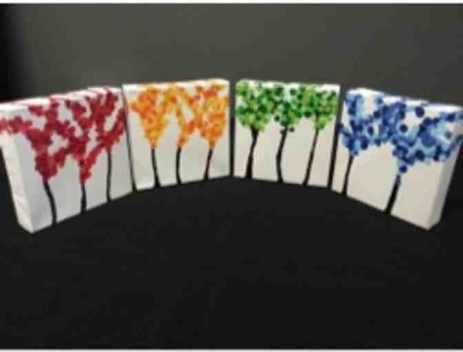 C. SEASONS IN THE SUN - EACH SEASON IS BEAUTIFULLY DEPICTED IN THIS SET OF FOUR, WITH THE STUDENTS' FINGERPRINT PETALS REPRESENTING EACH SEASON. THE 6"X6" FRAMES CAN CONNECT TO BE DISPLAYED IN A LINEAR FASHION OR REARRANGED INDIVIDUALLY AS DESIRED. ACYLIC ON WRAPPED CANVAS.