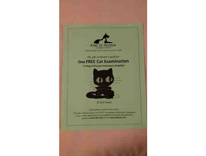 Up for auction is this gift certificate to King of Prussia Veterinary Hospital for a complementary cat examination.