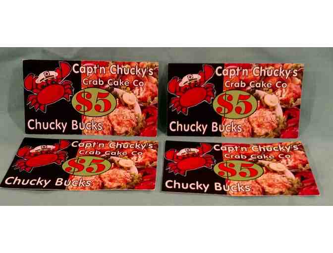 Up for auction is $20 in gift cards to Cap’n Chucky’s