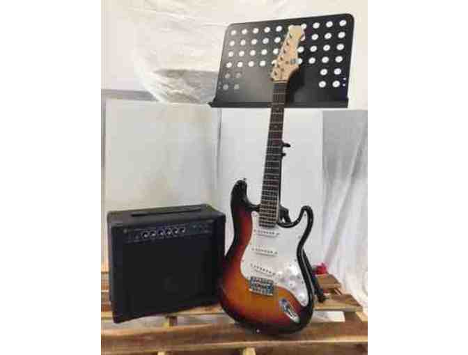 You are not going to want to miss the chance to bid on Mrs. Macaluso's class donation! Your budding musican will love this electric guitar, amplifier & music stand!!! This rockin' package includes these fab Monoprice brand items: