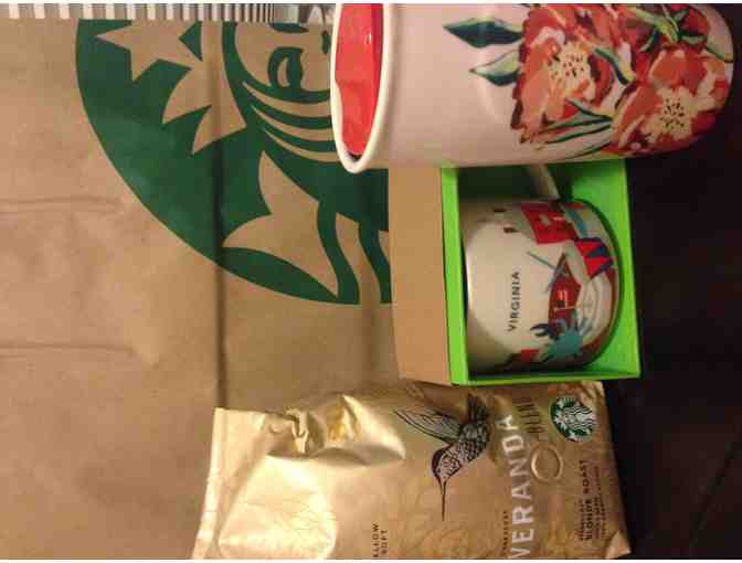 Enjoy this bundle of Starbucks Mellow and Soft Veranda Blend, Virginia State Mug and Ceramic Travel Blossom Mug.