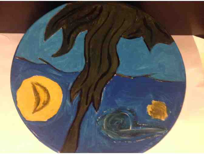 Karen Bell led one of our Borromeo House group sessions and helped our young mothers paint their interpretation of Van Gogh's Starry Nights on a display box.